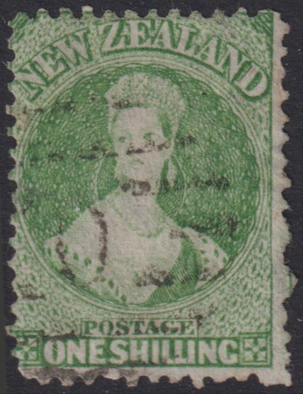 FFQ 1/- green, p12½, star wmk, 1 short corner perf. SG 124. Cat £180. FU. (Image)