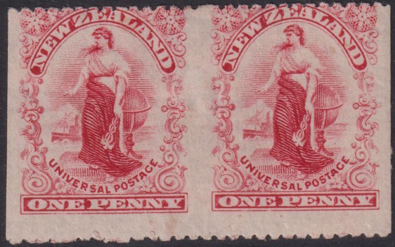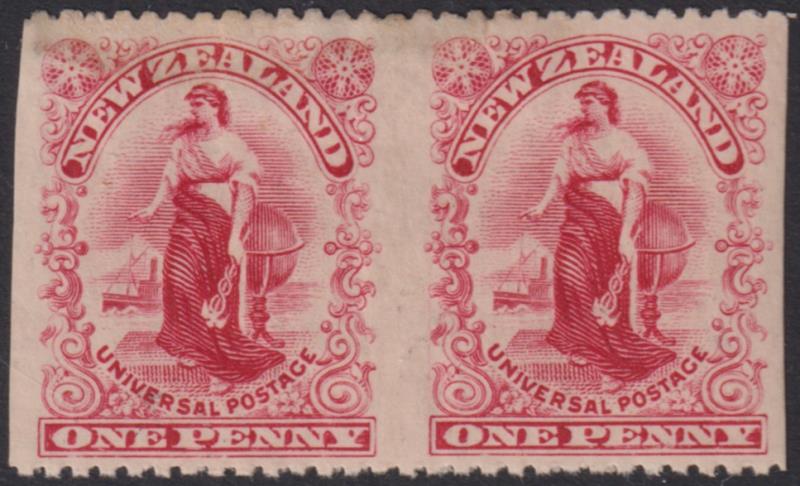 1901 1d Universal horiz pair, imperf vertically, p14 horiz, Basted Mills. CP G3bx. Cat $975. Mint. (Image)