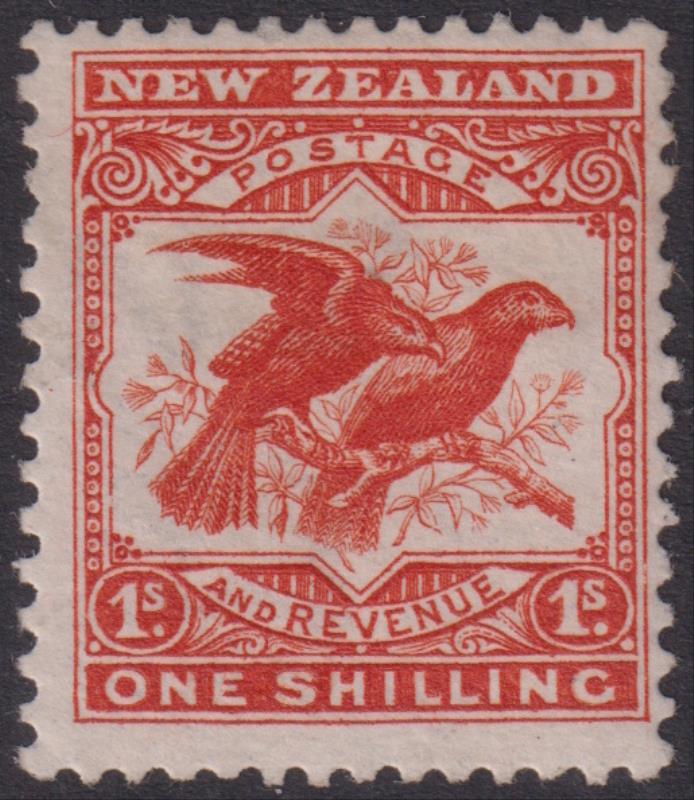 1907 1/- Kaka, p14 x 12¾. CP E19a. Cat $450. Mint. (Image)