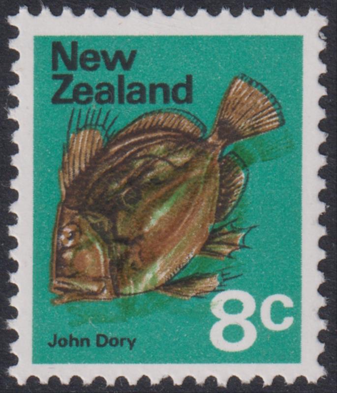 1974 8c Fish, 2mm shift green colour, no wmk. MUH. (Image)