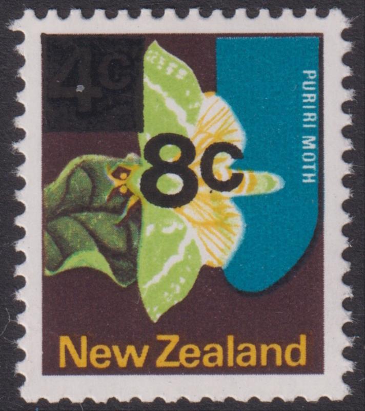 1973 4c Moth, no wmk, 2-3mm shift of veins (dark green) to right. Ex Stirling. MUH.
