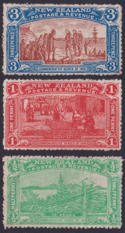 1906 ½d, 1d, 3d Christchurch Exbn (3d light crease). Unused no gum. (Image)