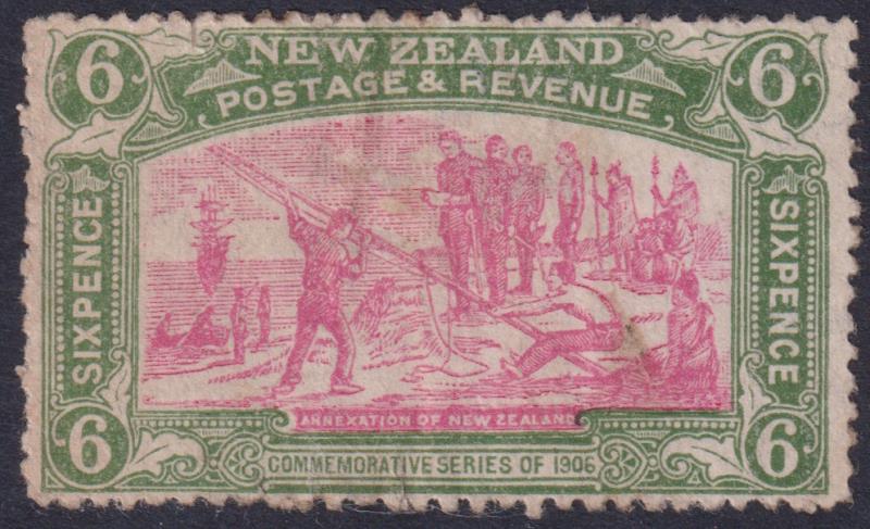 1906 6d Christchurch Exbn, no obvious pmk, a bit grubby & back thin. No gum, good spacefiller. Mint. (Image)