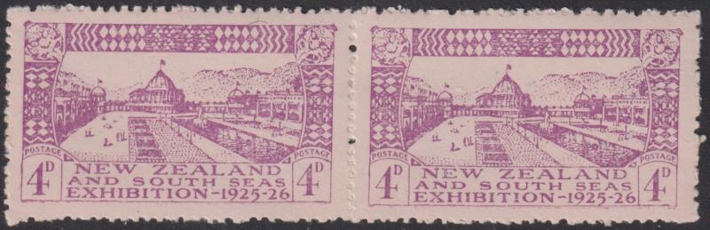 1925 4d Dunedin Exbn "POSTAGF" variety in pair. CP cat $490. MUH. (Image)