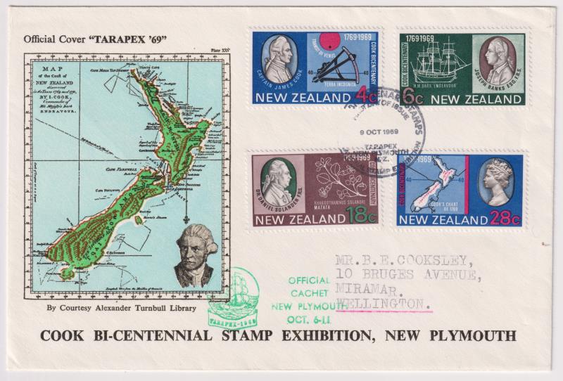1969 Cook set of 4 on Tarapex '69 official cover with "Tarapex" official cachet in green. Jury cat $125 (for m/s). (Image)