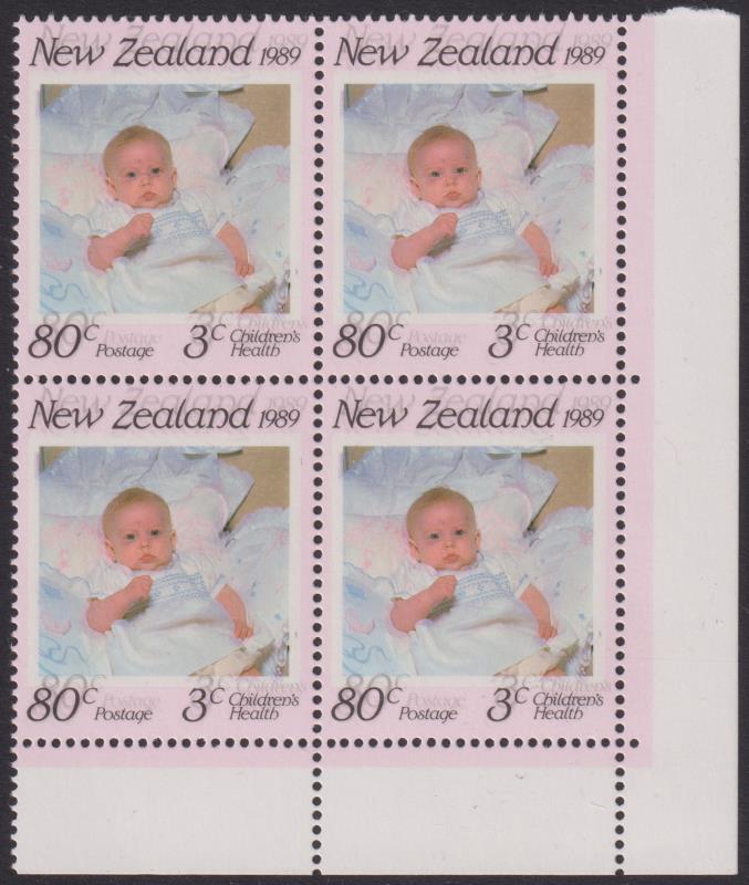 1582 * image1989 80c + 3c Princess Beatrice lower R/H corner blk of 4, obvious doubling black colour. MUH. (Image)