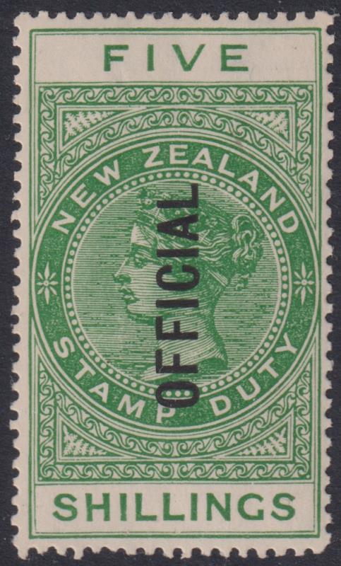 1915 5/- QVLT, p14½ x 14, no stop after "OFFICIAL" (R2/5), DLR. CP ZO6hz. Cat $700. VLH mint. (Image)
