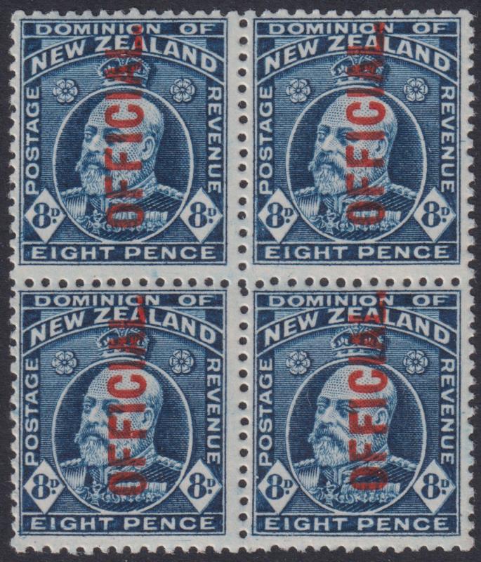 1916 8d EVII block of 4, p14 x 14½. CP HO7b. Cat $460. MUH. (Image)