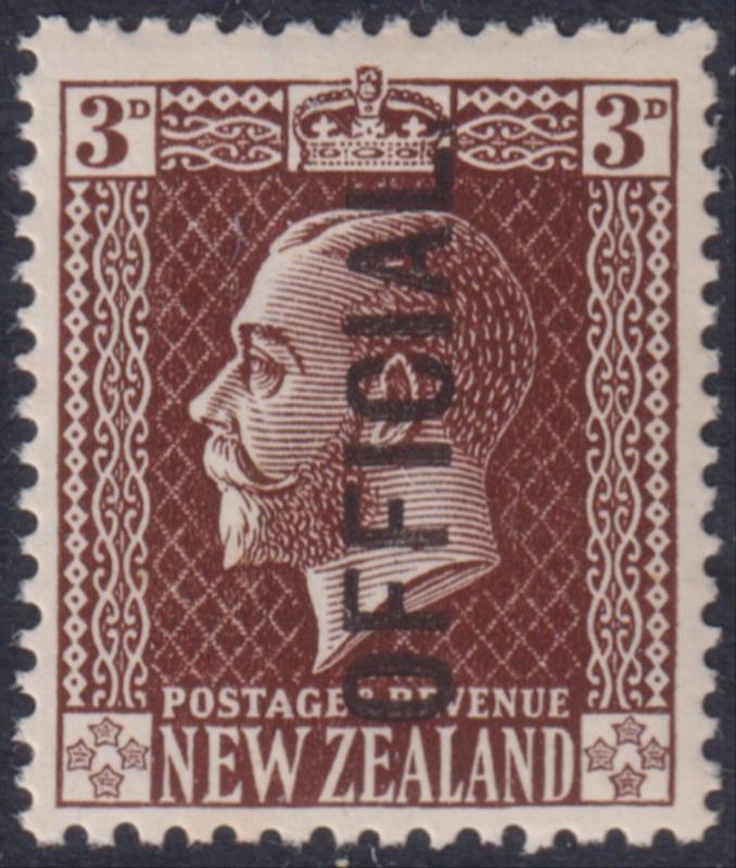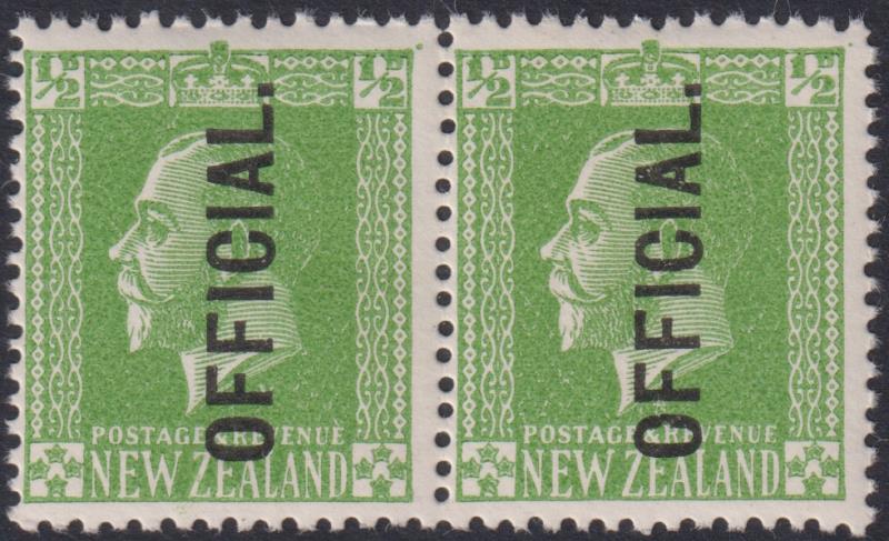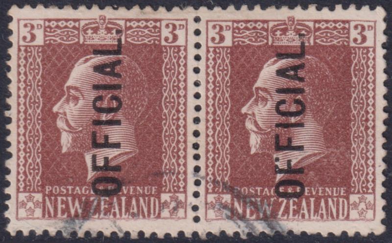 1925 3d GV chocolate surface horiz pair, p14 x 15, Cowan, 2nd stamp with broken 1st "F" in "OFFICIAL". CP KO19c(1)var. FU. (Image)