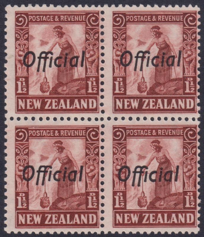 1935 1½d Cooking brown block of 4. Jury cat $72. MUH. (Image)