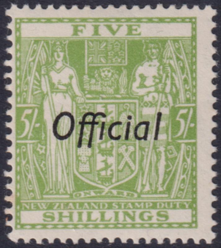 1935 5/- Arms, green, WT, single wmk, very light tone spot in gum. CP ZO33b. Cat $200. MUH. (Image)