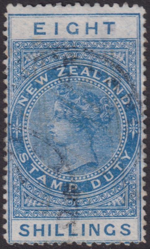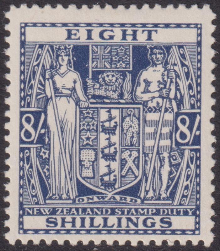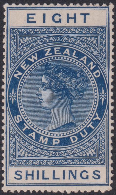 1913 8/- QVLT deep blue, p14 x 14, DLR chalky paper, sideways wmk. CP Z10j. Cat $900. Mint. (Image)