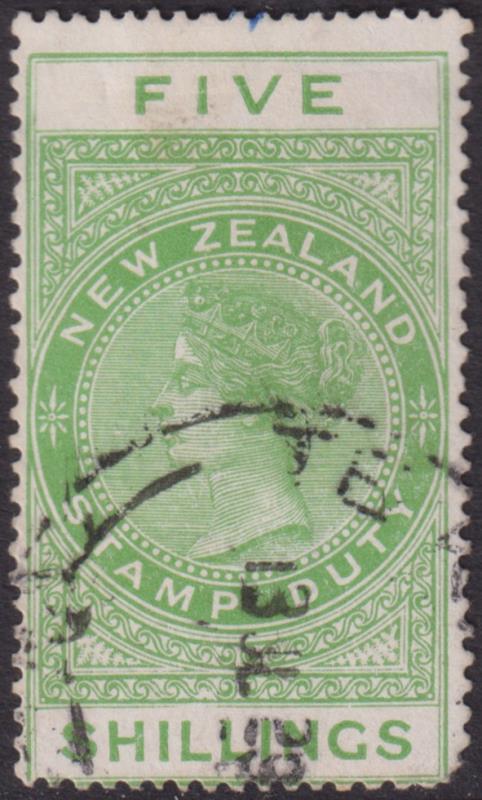 1882 5/- QVLT green. Jury cat $50. FU. (Image)