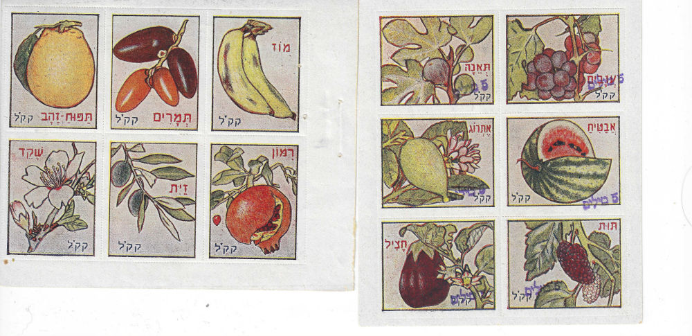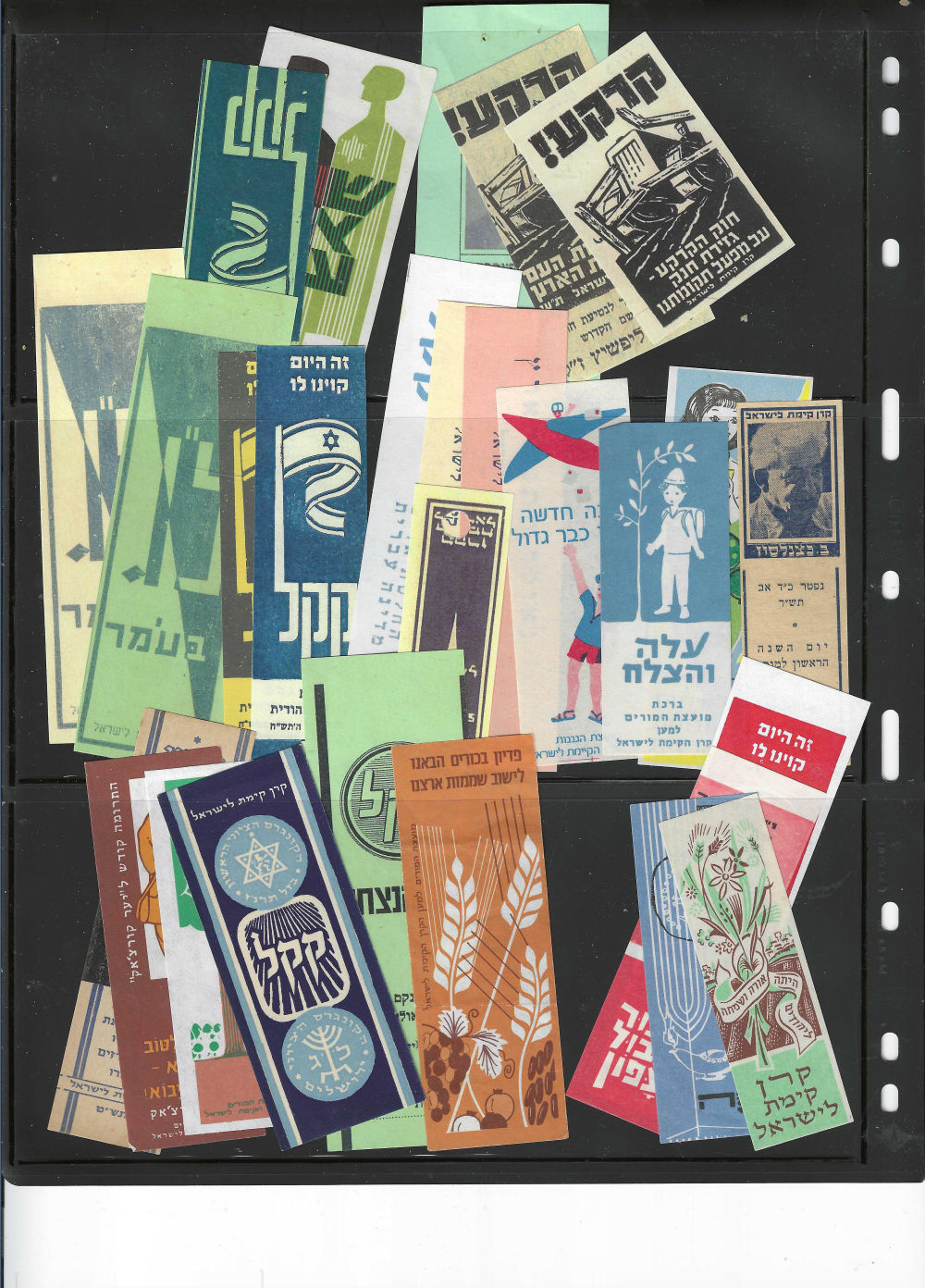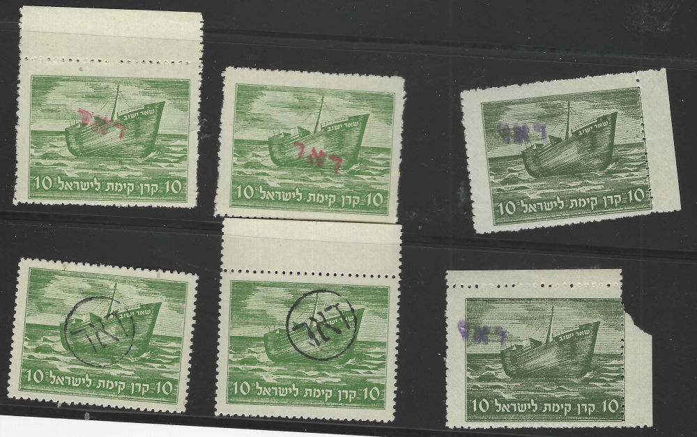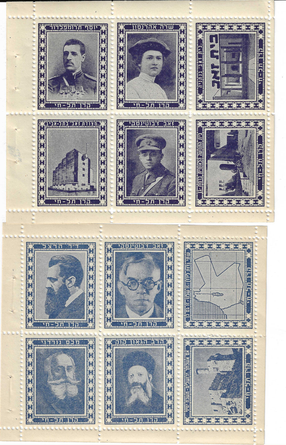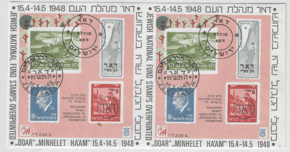 10 imageJNF STAMPS OVERPRINTED two attached (imperf between) sheetlets depicting the some of the stamps (Image)