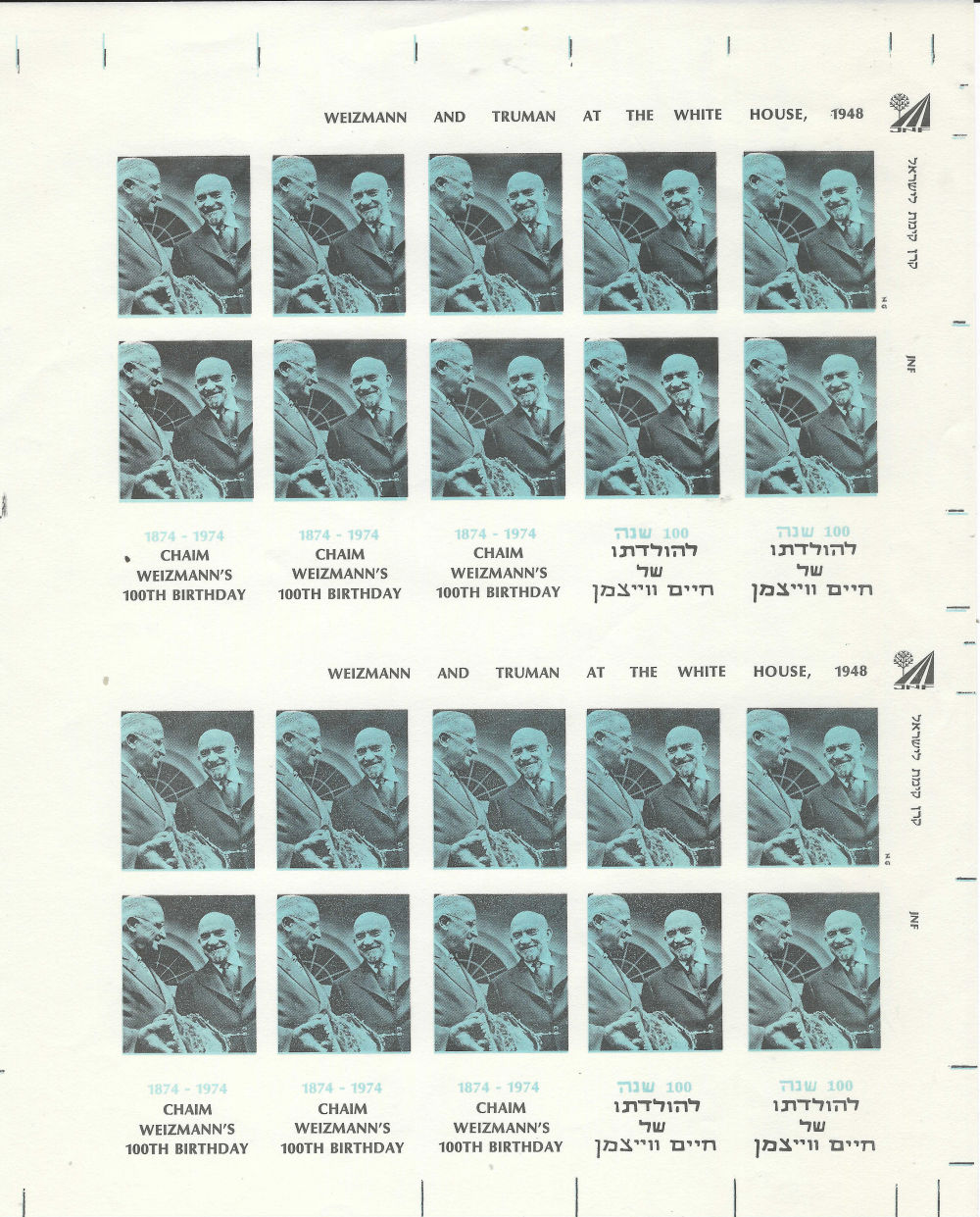 11 nh imageNY OFFICE – WEIZMANN 100 YEARS (ROCH A 325) imperf printer sheet without yellow (Image)