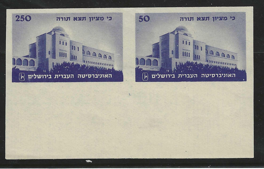 20 c imageHEBREW UNIVERSITY 250 & 50 values, imperf pair from bottom of sheet (Image)