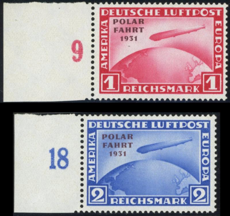 1931, 1 and 2 RM Polar travel both with overprint flaw unhyphenated, each in the mint never hinged left margin copy, superb, photo expertize Schlegel (from former pairs), Michel (5300.-) R!....