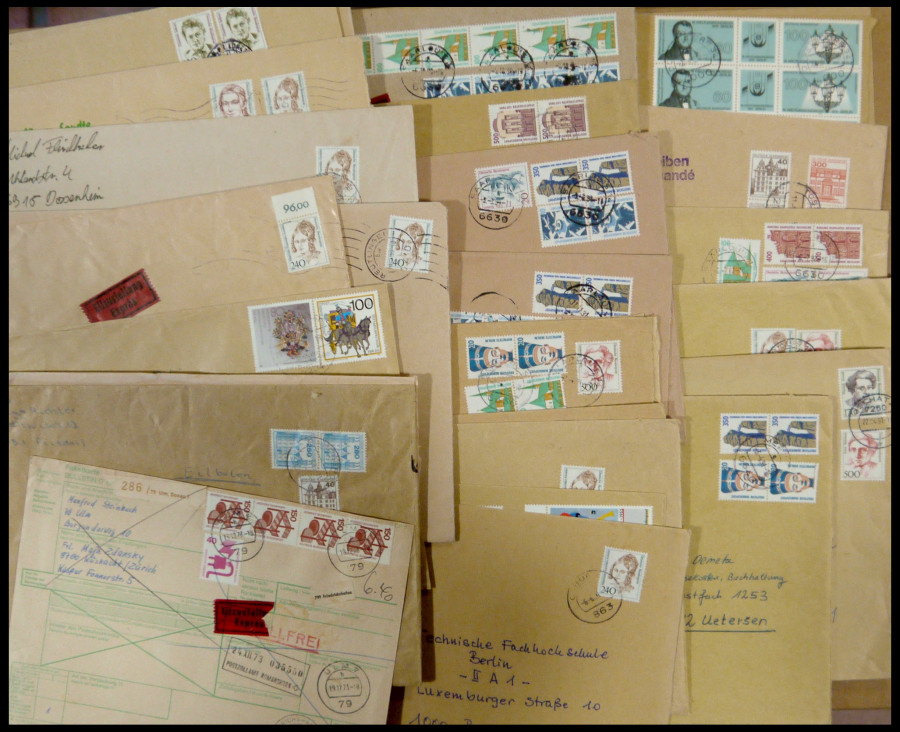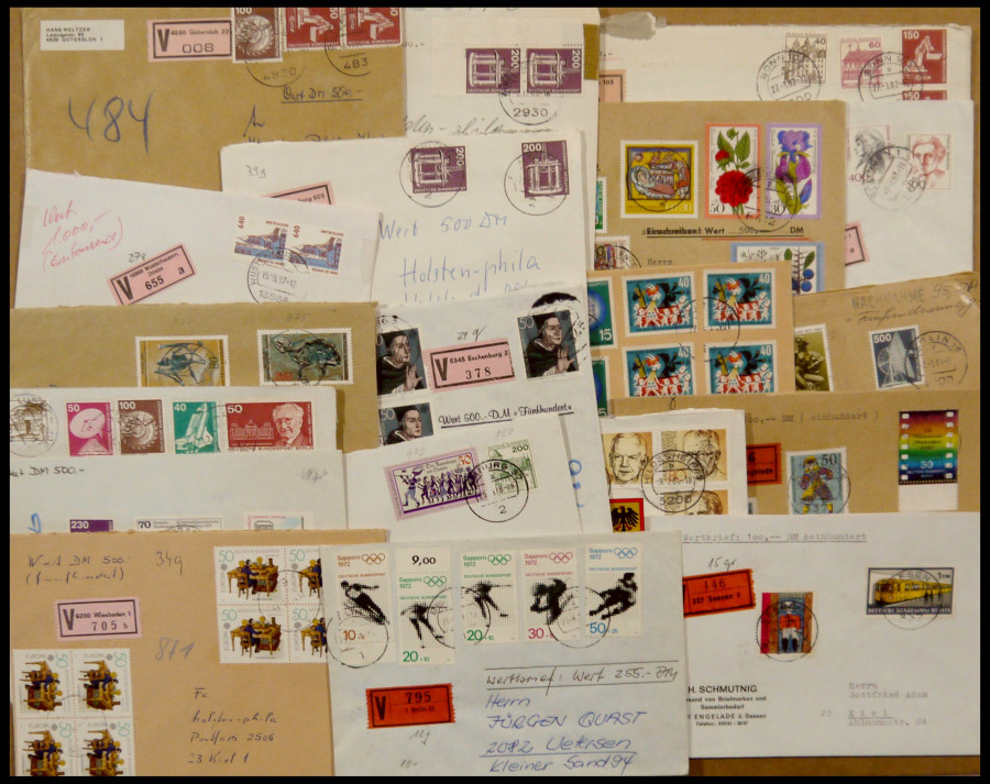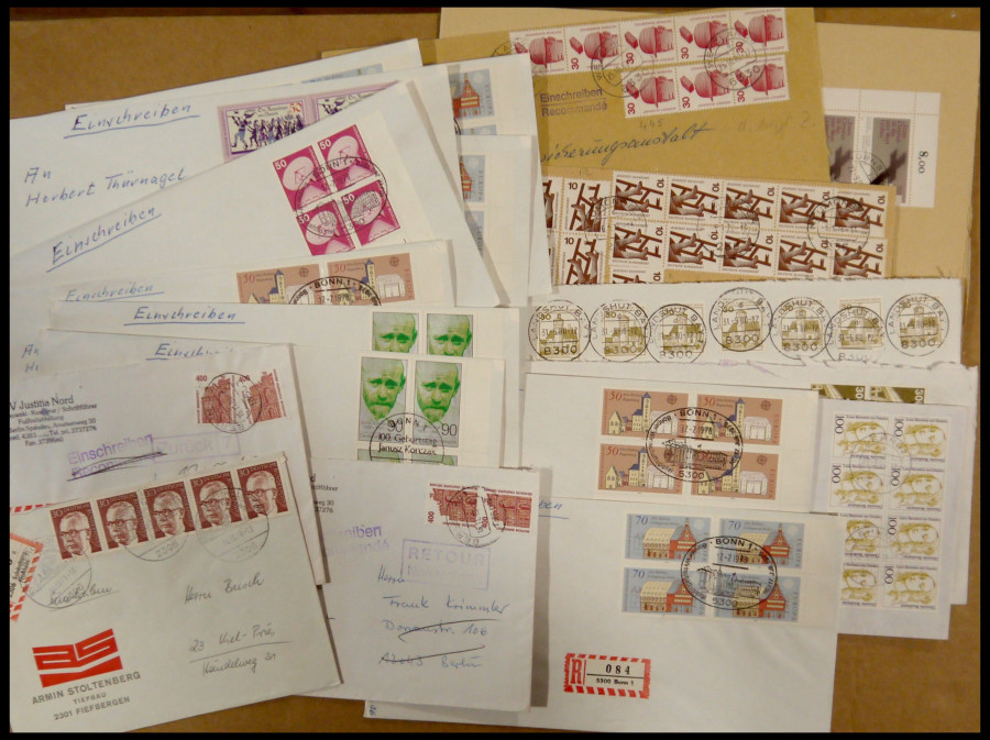FEDERAL REPUBLIC GERMANY LOTS. About 1980, 20 Value shipments on large cover, with multiple franking, very fine / superb