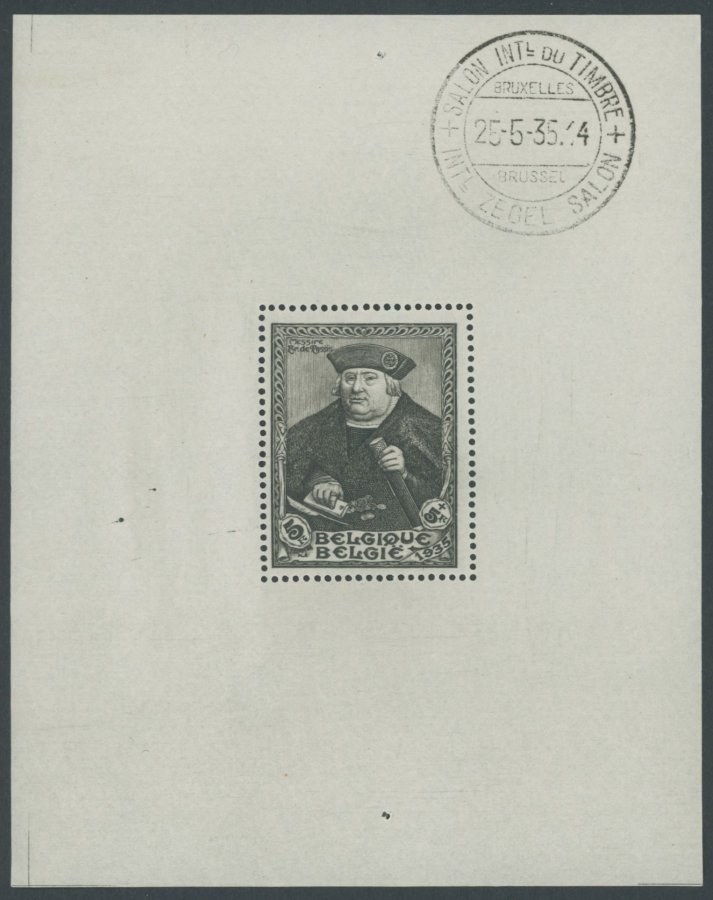BELGIUM. 1935, souvenir sheet "SITEB", first day postmark in the margin, mint never hinged, superb, Michel 400.- (Image)