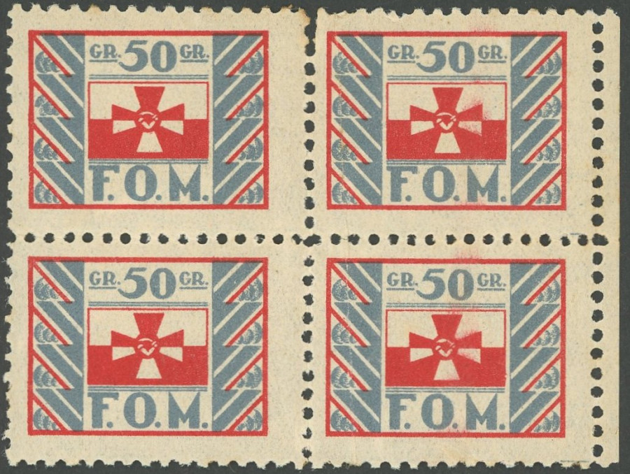 POLAND. 1933, 50 Gr, F. O. M., Spendenbriefmarke of the Fundusz Obrony Morskiej, (Polish maritime Verteidigungsfond), in the block of four, very fine / superb (Image)
