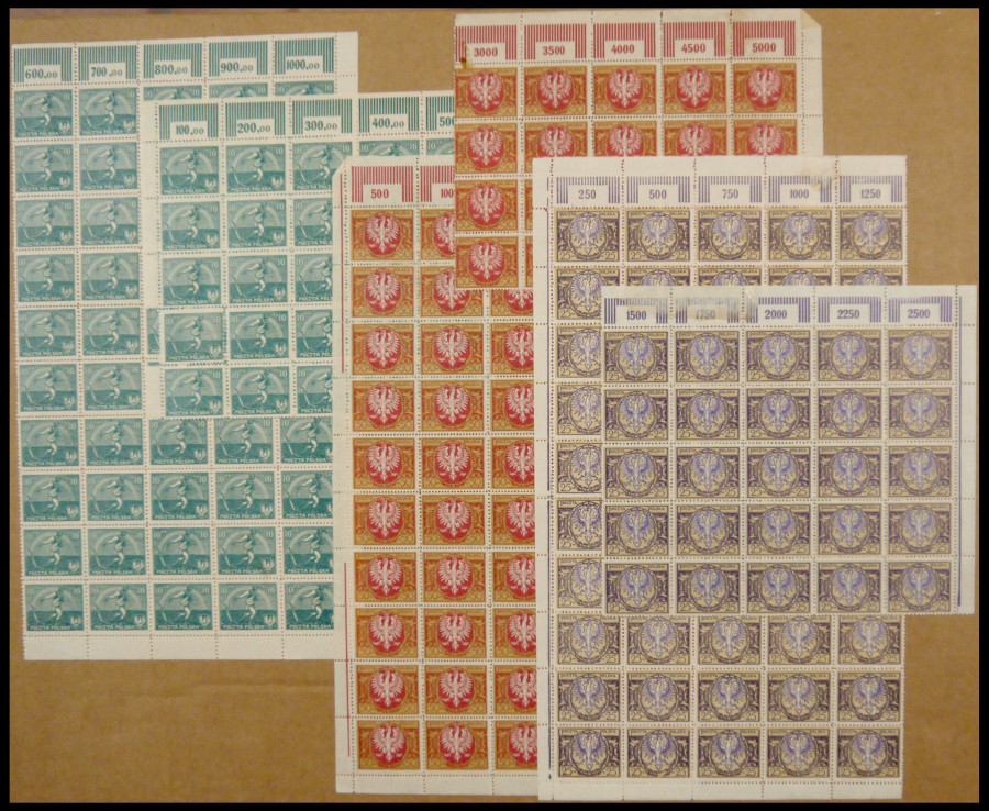 POLAND LOCAL ISSUE, COLLECTIONS, LOTS. 1921, small lot parts of sheets, mint never hinged, almost only superb (Image)