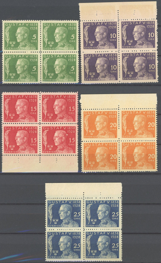 SWEDEN. 1928, 70. Birthday in block of four, very fine set mint never hinged, Michel 100.- (Image)