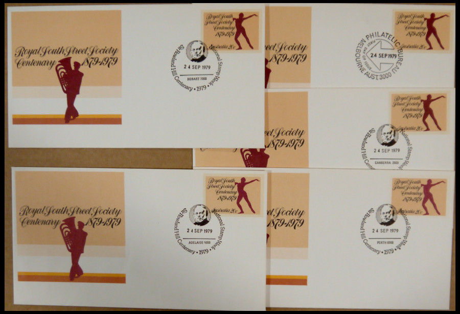 AUSTRALIA. 1979, 5 postal stationery Royal South street Society Centenary 1879-1979, with different special cancel, superb