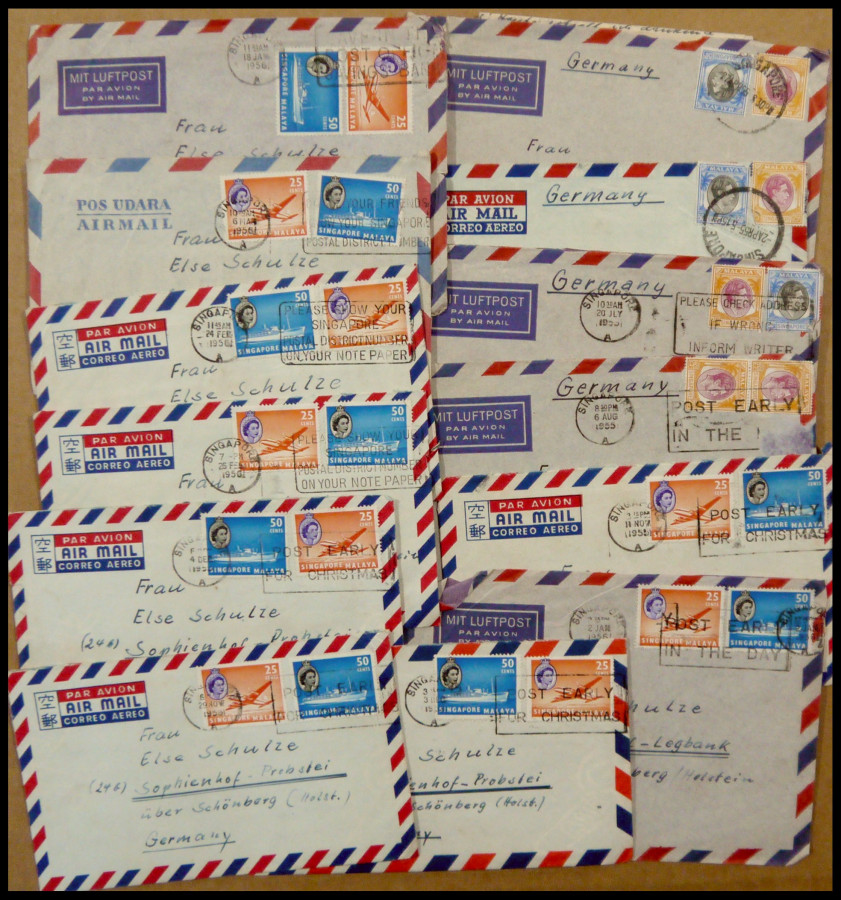SINGAPORE. 1955 / 6, 13 documents, all to Germany used, with content, very fine / superb (Image)