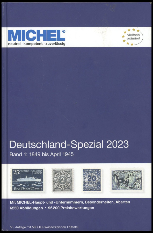 PHIL. CATALOGUES. Michel: Germany special 2023, volume 1, 1849 to April 1945, old selling price: EUR 98.- (Image)