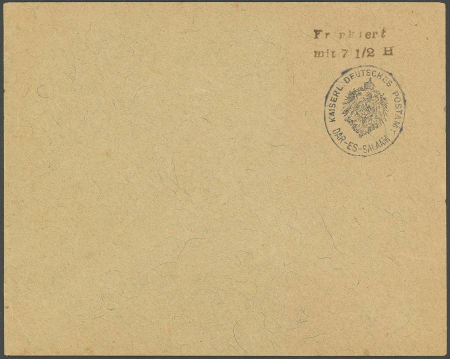 GERMAN EAST AFRICA POSTAL STATIONERIES. Prepayment of postage: Daressalaam 71 / 2 H. Violet, unused cover, superb (Image)