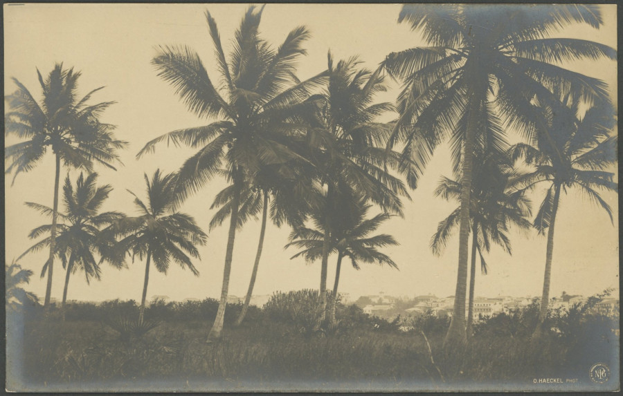 GERMAN EAST AFRICA POSTAL STATIONERIES. 21 / 2 H. Brown private postcard, palms trees landscape, unused, superb (Image)