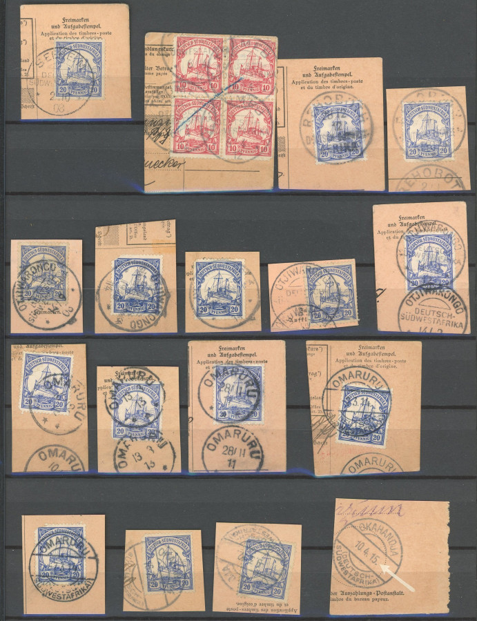 GERMAN SOUTHWEST AFRICA. 29 postal service sections with plain frankings, mixed quality, inspect! (Image)