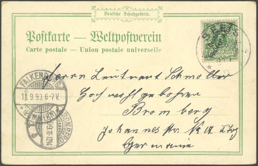 GERMAN SOUTHWEST AFRICA POSTMARK. SEEIS, . 99, on coloured picture postcard to Bromberg with 5 Pf., superb (Image)