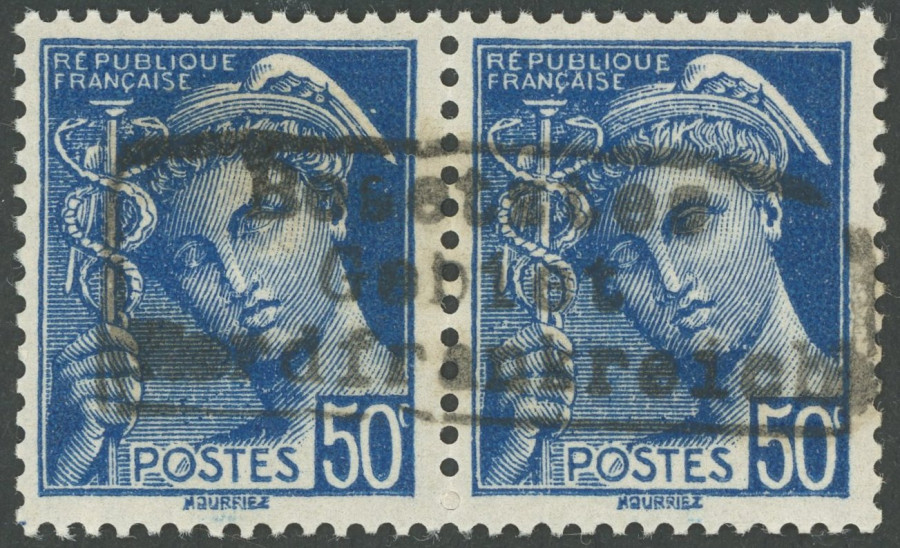 GERMAN. BES. II. WW FRANCE DUNKIRK. 1940, 50 C. Blackish blue in a horizontal pair, overprint in type I, mint never hinged, superb, expertized Pickenpack, Michel 300.- (Image)