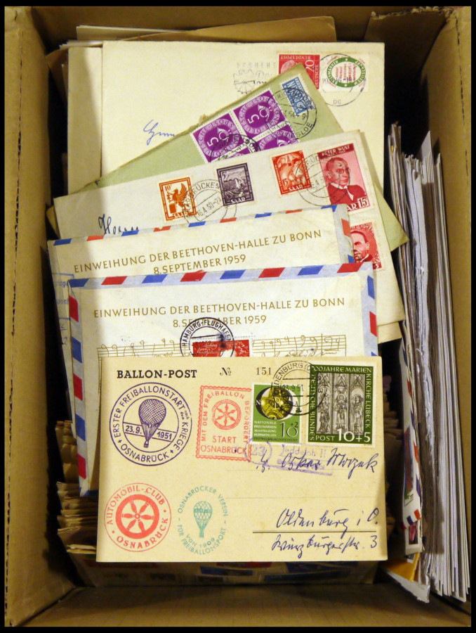 SLG., LOTS GERMANY. a large box, full with covers, postwar Germany, mostly simple documents, treasure trove (Image)