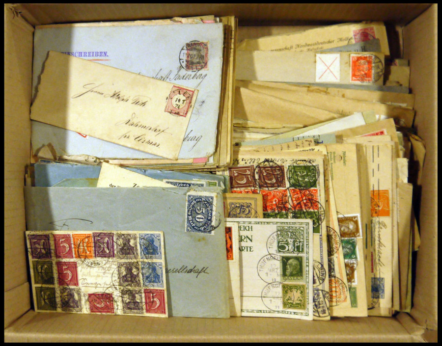 SLG., LOTS GERMANY. box, with many covers and cards, Germany before 1945, as well much Germania and inflation, treasure trove