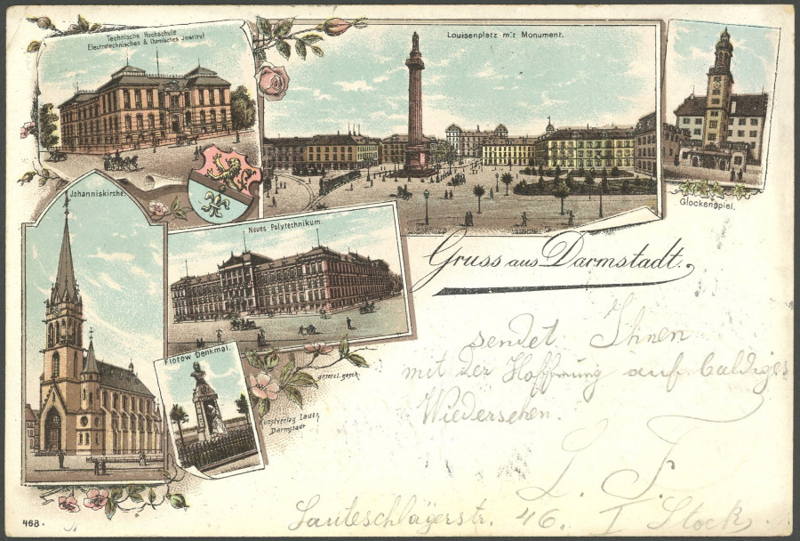 OLD POSTCARDS GERMANY AND SO ON.. DARMSTADT, greatings from. card from 1896, superb (Image)