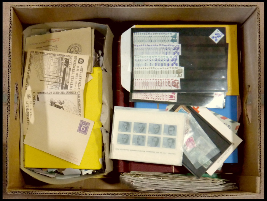WUNDERKISTEN, NACHLÄSSE. interesting remaining lot of an admission, many covers and cards, small collection occupation Geb. II. world war and much more, in a large box, treasure trove (Image)