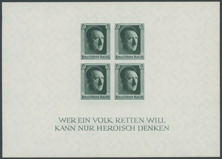 GERMAN REICH 1933 1945. 1937, souvenir sheet Hitler imperforated, mint never hinged, superb, Michel 220.- (Image)