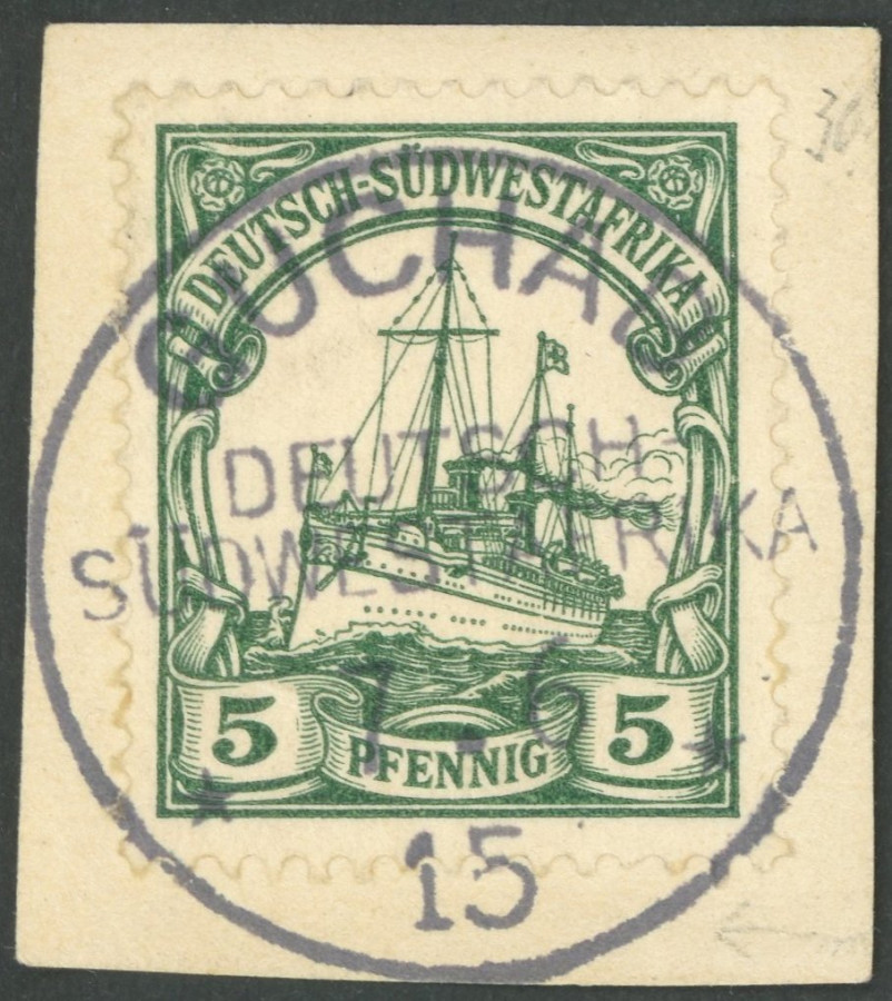 GERMAN SOUTHWEST AFRICA POSTMARK. GUCHAB, 7.6.15, perfect on 5 Pf., superb piece of letter (Image)