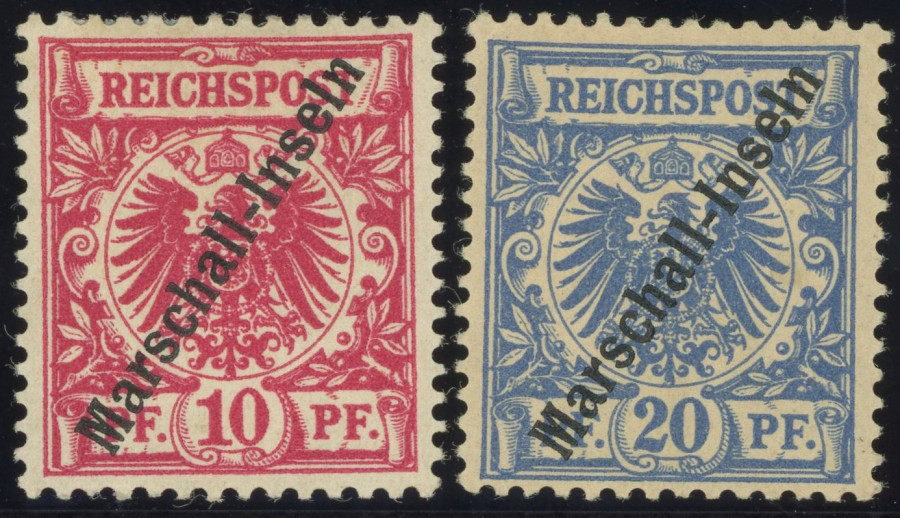MARSHALL ISLANDS. 1897, 10 and 20 Pf. Jaluit-issue, a number of rest of hinges, superb, expertized Jäschke L, Michel 150.-