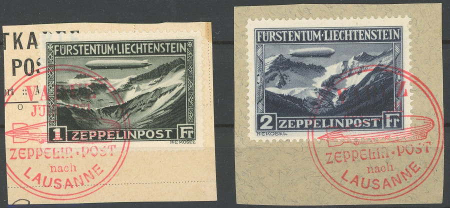 LIECHTENSTEIN. 1931, Count Zeppelin, red special cancel, 2 very fine pieces of letter, Michel (600.-) (Image)