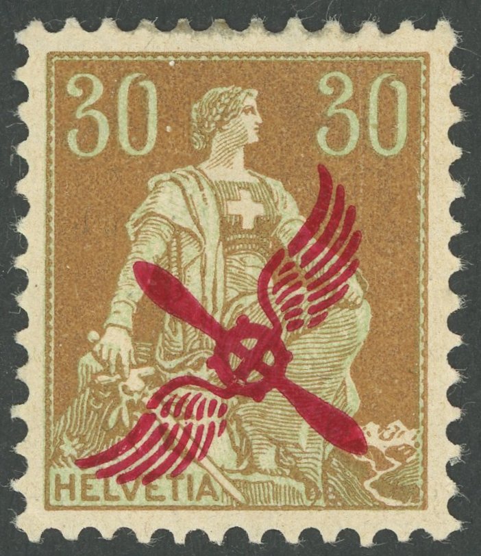 SWITZERLAND. 1923, 15 C. airmail with variety broken bicycle, superb, Michel 80.- (Image)