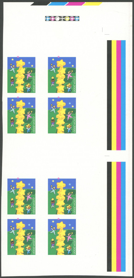 EUROPE UNION. 2000, Europe 2000, imperforated proof print unit with gutters without country inscription, without gum, superb, RR!