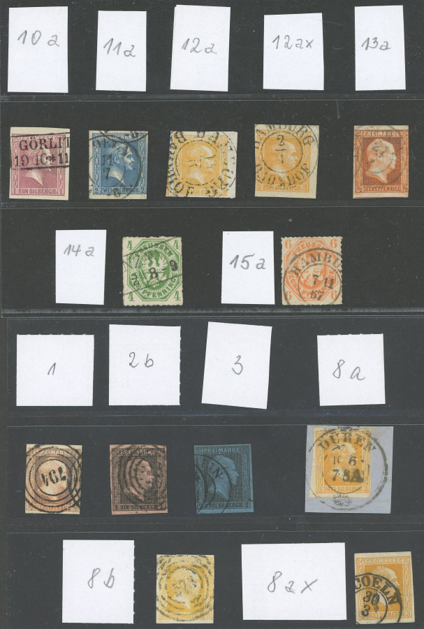 PRUSSIA COLLECTIONS, LOTS. small neat lot of 23 different values, among others Michel number 19 a in the pair, 25 b used, and so on, slightly mixed condition with various superb items, all expertized, Michel 1600.- (Image)