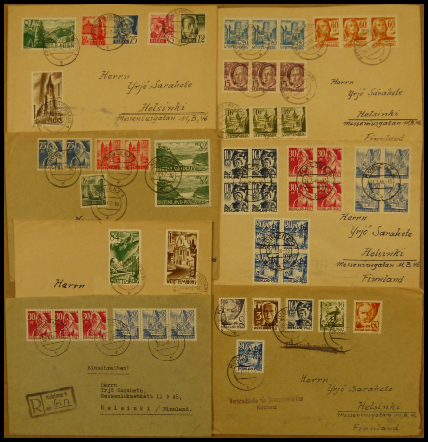FRENCH ZONE COLLECTIONS, LOTS. 1847 / 8, 7 various covers to Finland, as well a registered cover, superb (Image)
