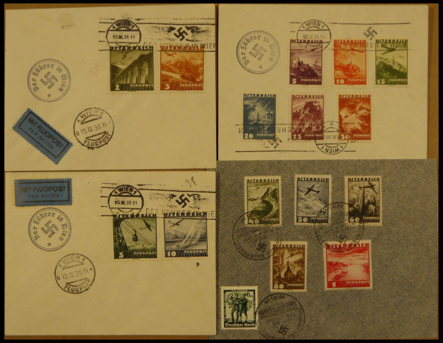 AUSTRIA 1918-1938. 1938, airplane over landscapes, on 4 covers, with special cancel the leader in Vienna, superb (Image)