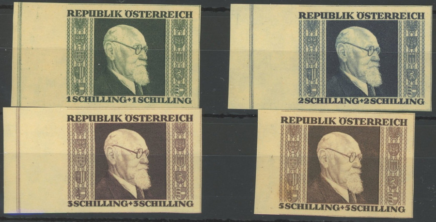 AUSTRIA 1945-1949. 1946, Renner, imperforated, very fine set mint never hinged, Michel 280.- (Image)