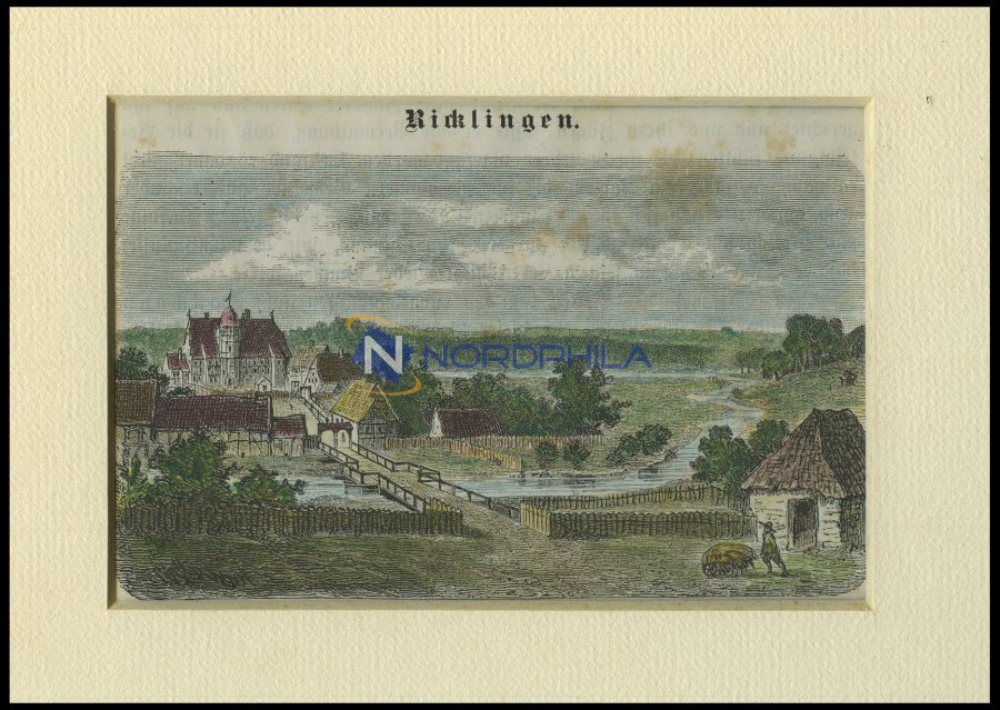 OLD CITY VIEWS GERMANY. RICKLINGEN, general view, coloured wood engraving from patriotic stories from Goerges 1843 / 4