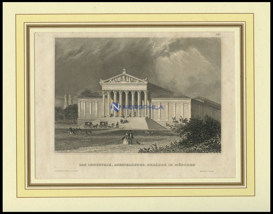 OLD CITY VIEWS GERMANY. Munich: the industrial exhibition building, steel engraving from B. I. About 1840 (Image)